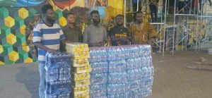 The donation was received by Mr. Emmanuel Anane known as Awukye, representing the Regional Minister, who expressed gratitude for Big Peiro’s generosity.