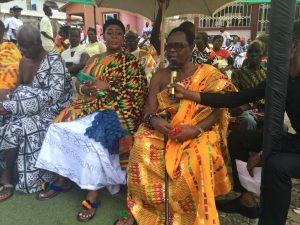 The ceremony was marked with traditional music, dance, and drumming, as well as the slaughtering of sheep and other traditional rituals. The Toasehene Nana Yim Awere Ababio and Toasehemaa Nana Amonu Gyamfua Serwaa Bonsu showered words of encouragement, wishing her well in her new role.